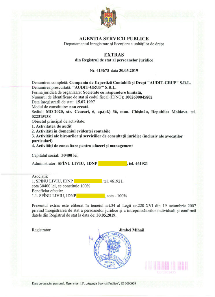 Аудиторская компания „CECD AUDIT GRUP” S.R.L. действует на рынке Республики Молдова с 1997 года. Цель нашей работы — помочь компаниям улучшить свое финансово-экономическое состояние, избежать ошибок ведения хозяйственной деятельности, повысить эффективность деятельности экономических служб.Компания является членом Ассоциации Аудиторов и Аудиторских Организаций „AFAM” с 1997г. и обладает страховым полисом профессиональной ответственности аудиторов.